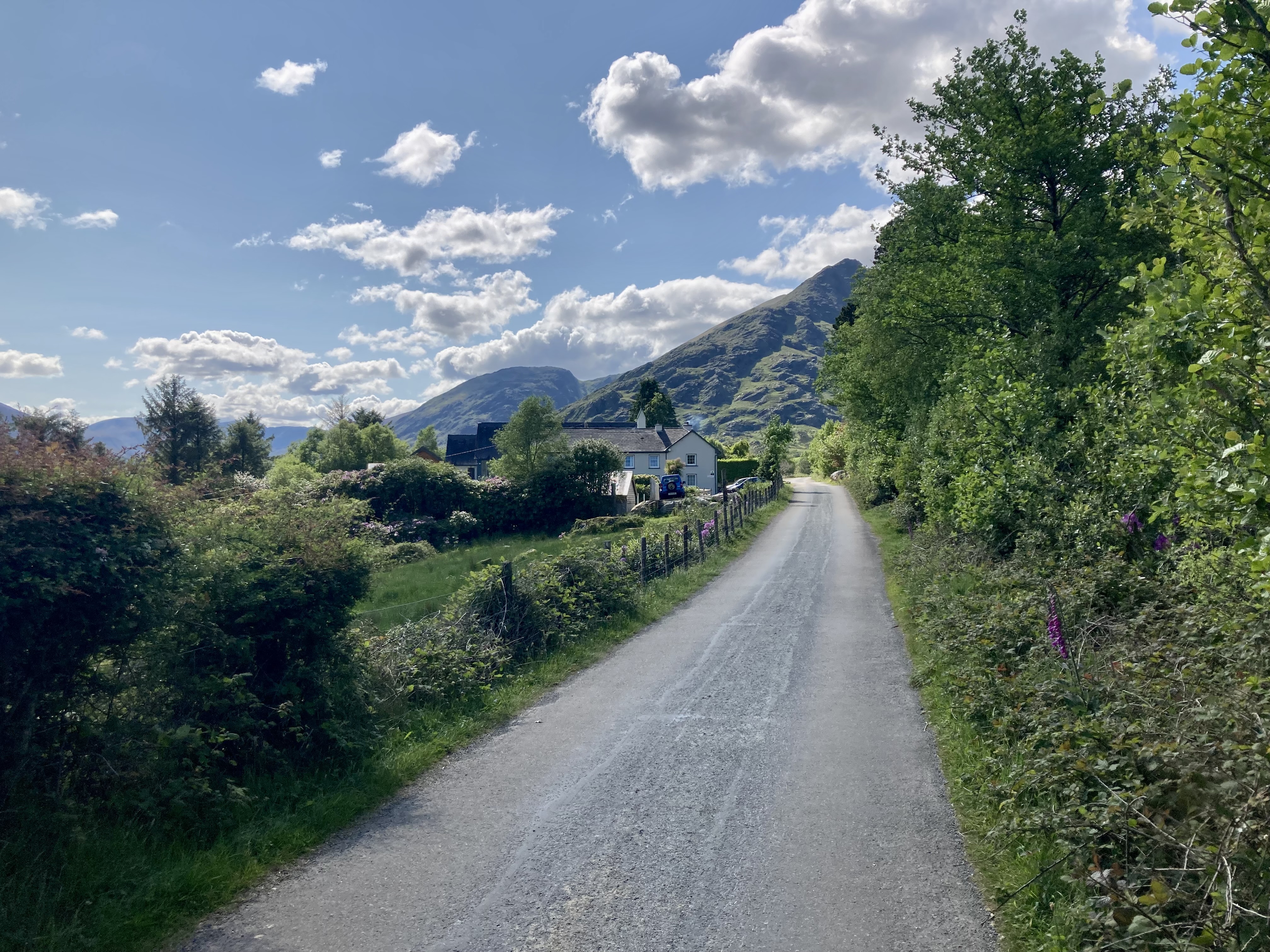 The trail leaves Killarney by way of the Muckross House grounds and then crosses the main road to the Torc Waterfall, a popular tourist spot. I met a young German lad on my way out. He as weighed down by a HUGE pack with all sorts of gear hanging off of it. His face was already read from the heat and he looked worried. His pack was 20kg. Mine is about 17kg. He said he was hiking to the Skellig Michael island ferry. And, he said, I am worried my pack is too heavy. Of course, I felt relieved I chose to off load so much of my gear.